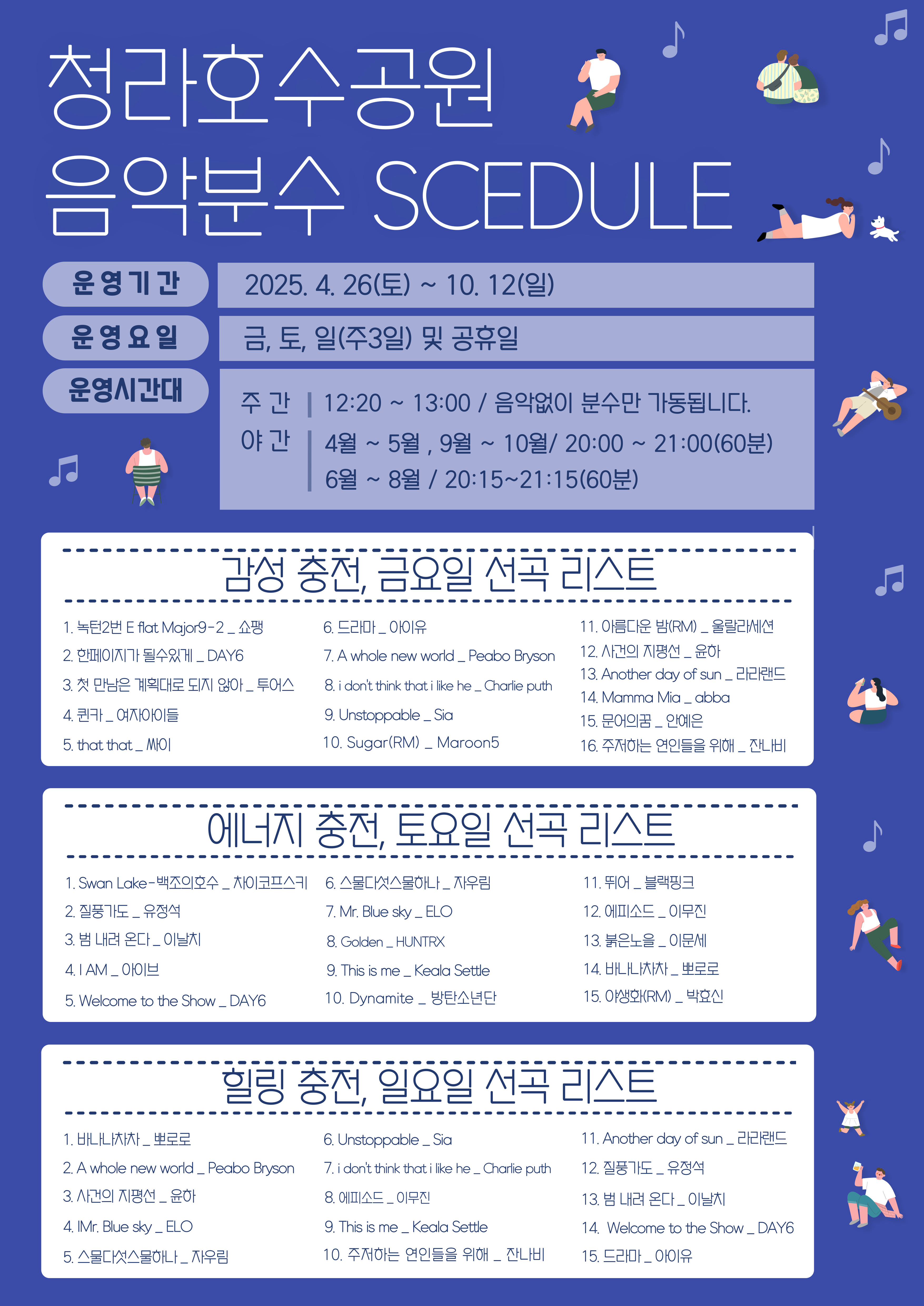 2025년 청라호수공원 음악분수 연주곡 목록 및 시간표