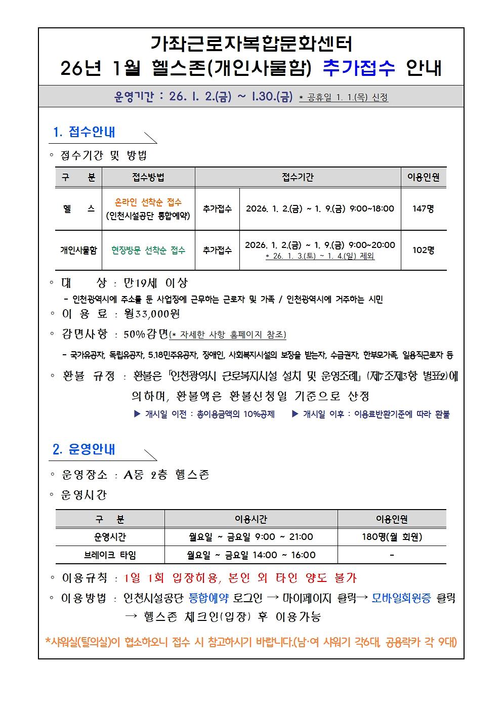 2026년 1월 헬스존(개인사물함) 추가 접수 안내