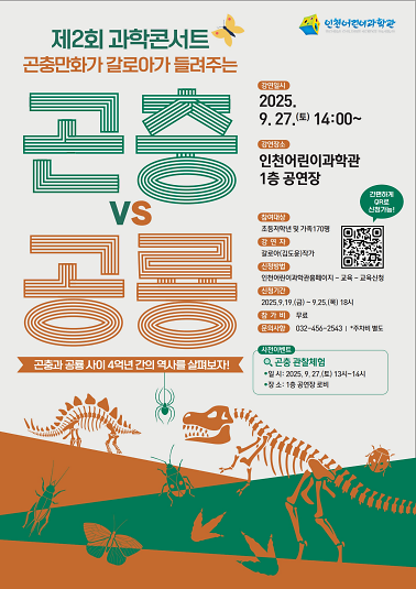 인천시설공단 인천어린이과학관은 곤충학자이자 만화가인 갈로아(김도윤) 작가를 초청해 어린이들이 생물의 생태와 진화의 역사에 대한 호기심을 충족하고 과학적 사고력을 기를 수 있는 ‘제2회 과학콘서트’를 개최한다.