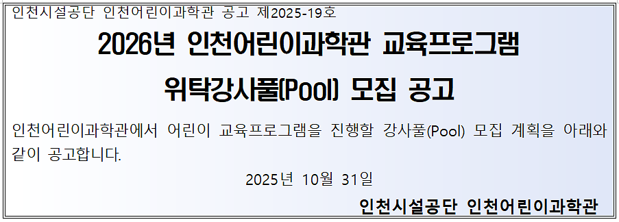 [공고] 2026년 교육프로그램 위탁강사풀(POOL) 모집 공고