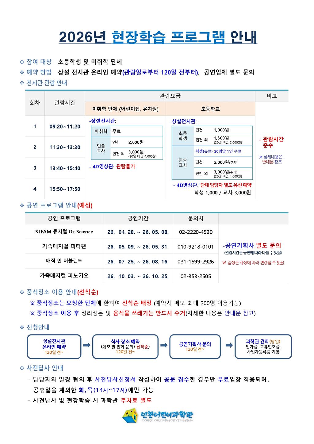 2026년 단체현장학습 프로그램 안내