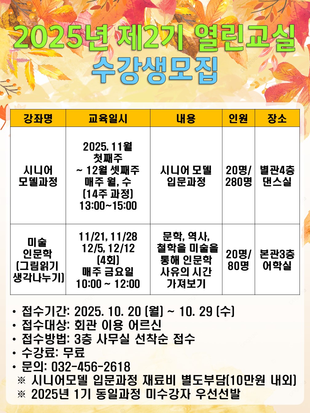 [평생교육] 2025년 2기 열린교실 수강생 모집