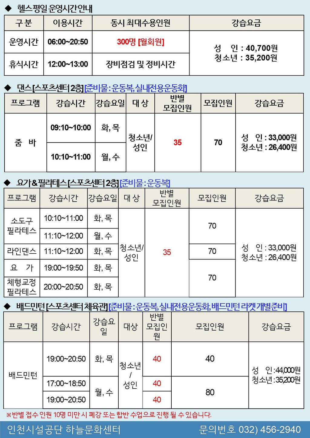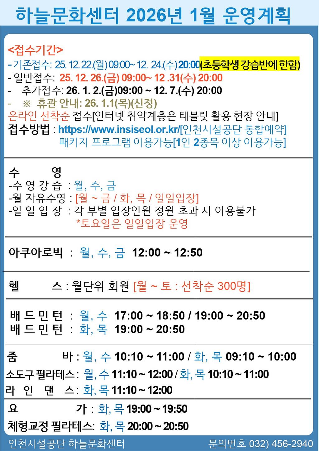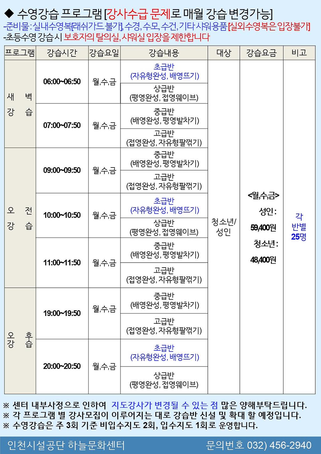 *휴관일에는 모든 프로그램(일일 자유수영 포함) 미운영하오니 이용에 참고하여 주시기 바랍니다.