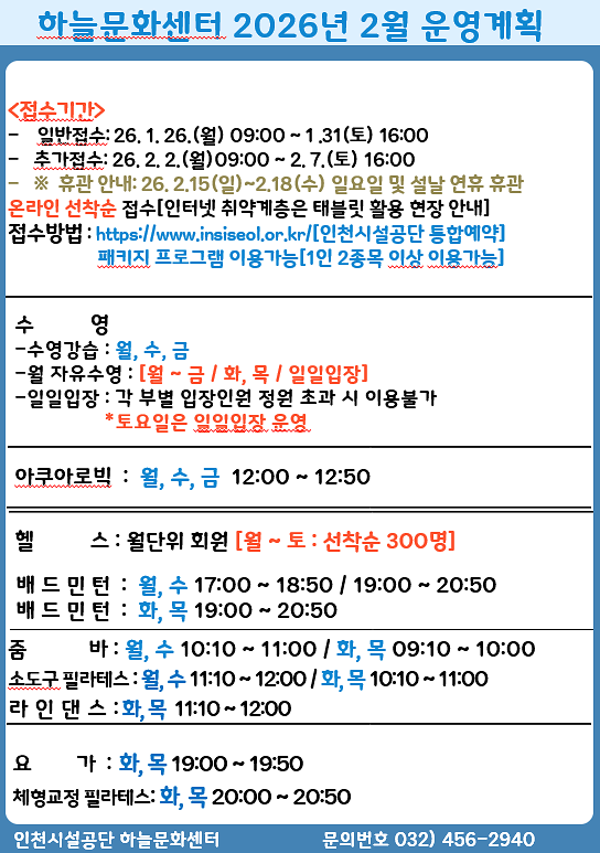 2026년 2월 프로그램 편성표