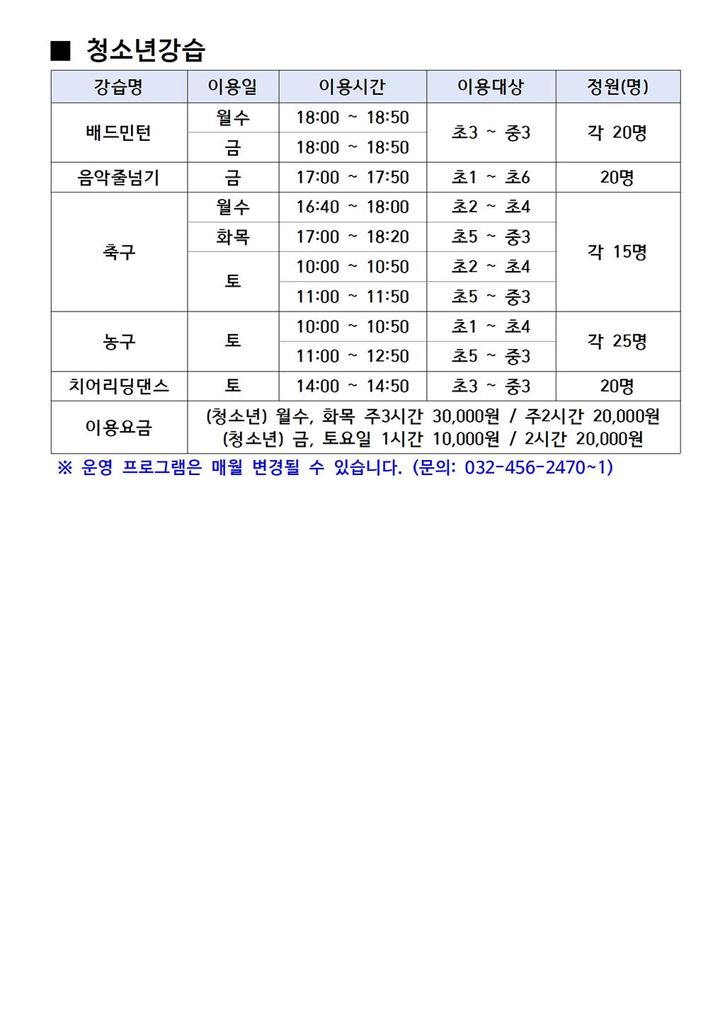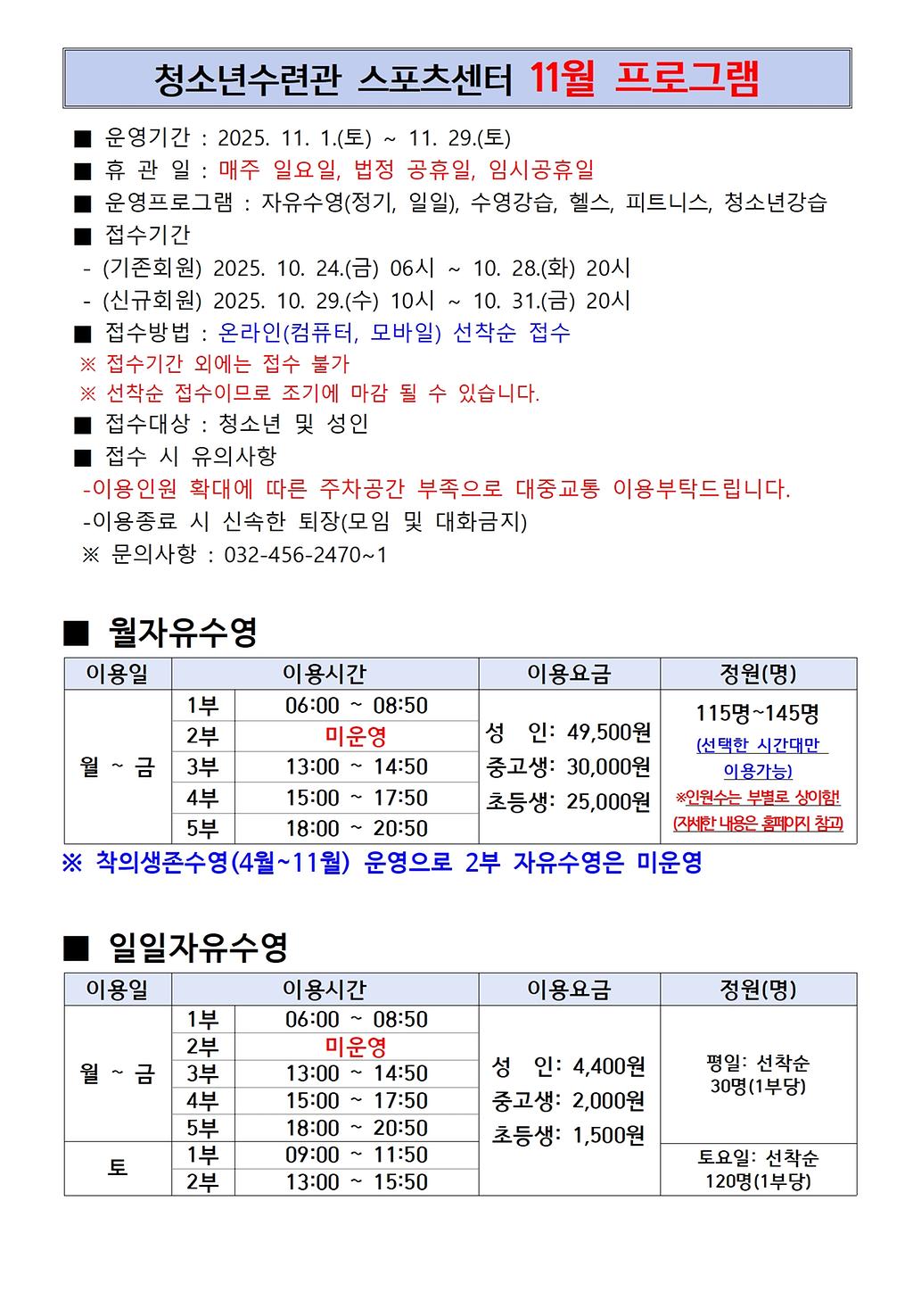 [모집] 2025년 11월 청소년수련관 생활체육 프로그램 안내