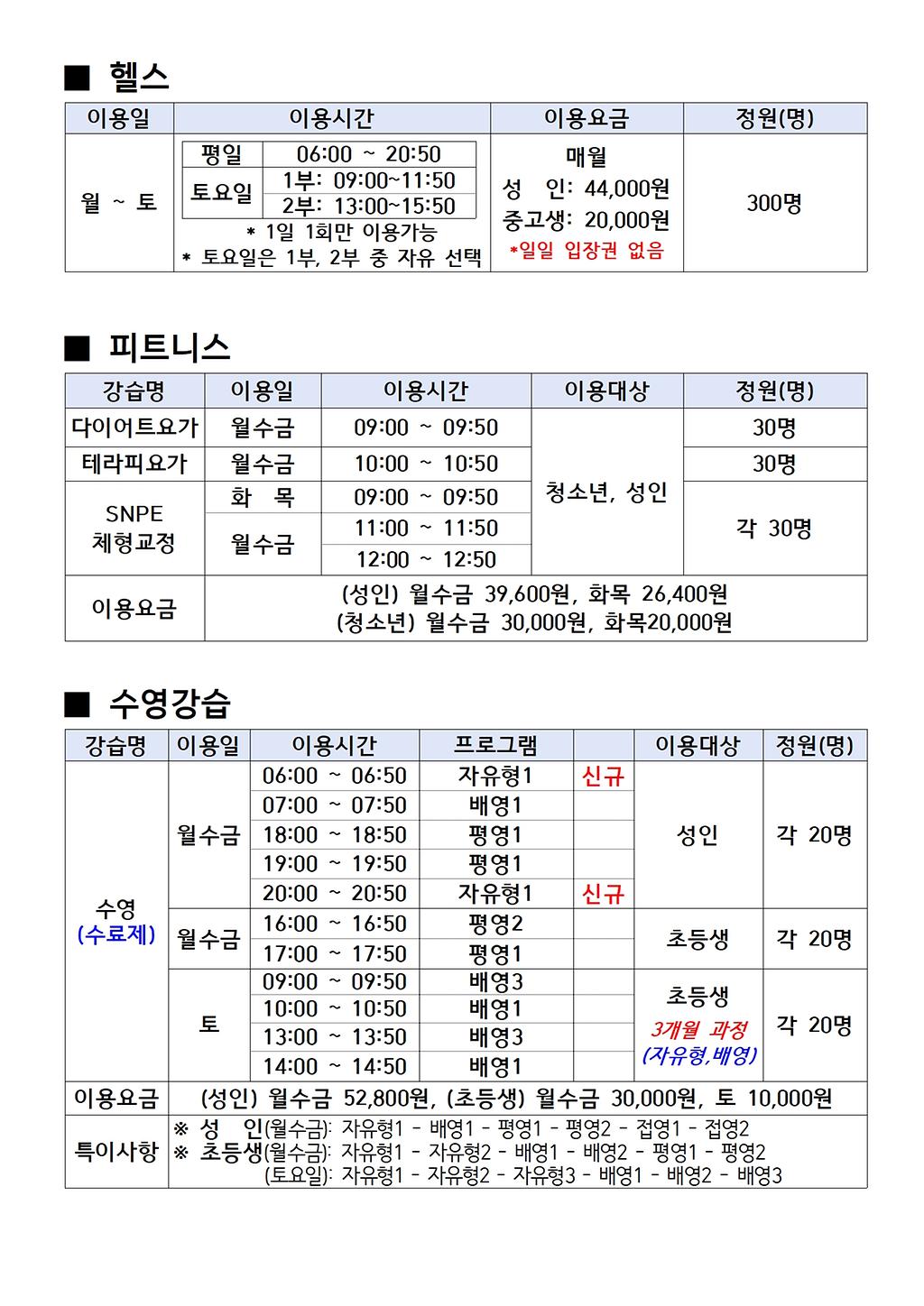 스포츠센터이용안내