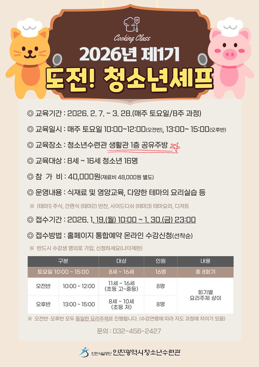 [모집] 2026년 제1기 도전! 청소년셰프 참가자 모집