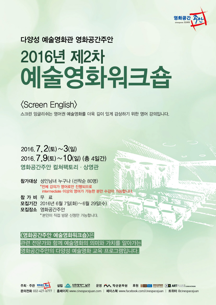 저용량_2016년 제2차 영화공간주안 예술영화워크숍 전단.jpg 이미지 저용량_2016년 제2차 영화공간주안 예술영화워크숍 전단.jpg (97KByte) 사진 다운받기