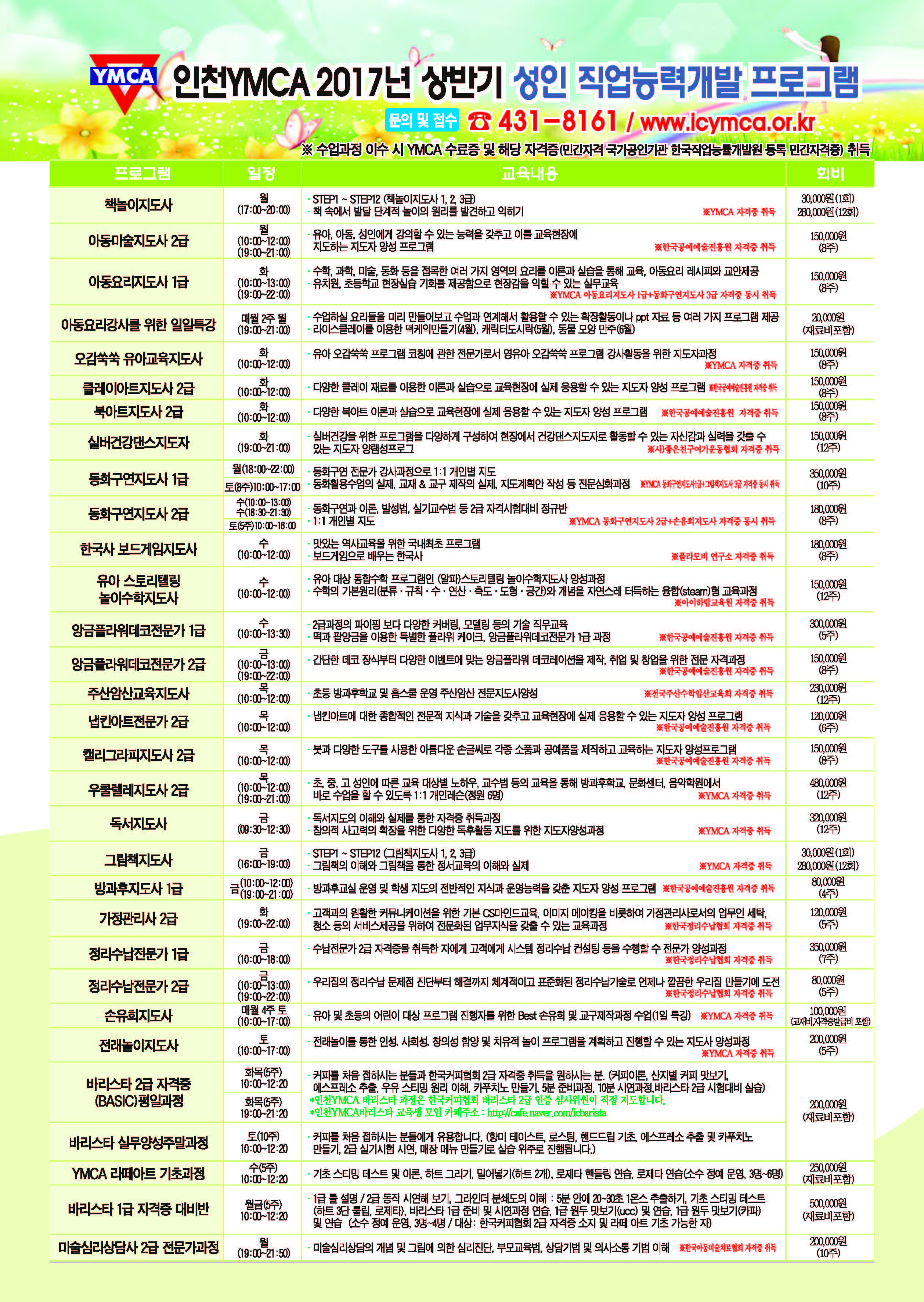*** 인천YMCA 2017년 상반기 성인 직업능력개발 프로그램 ***