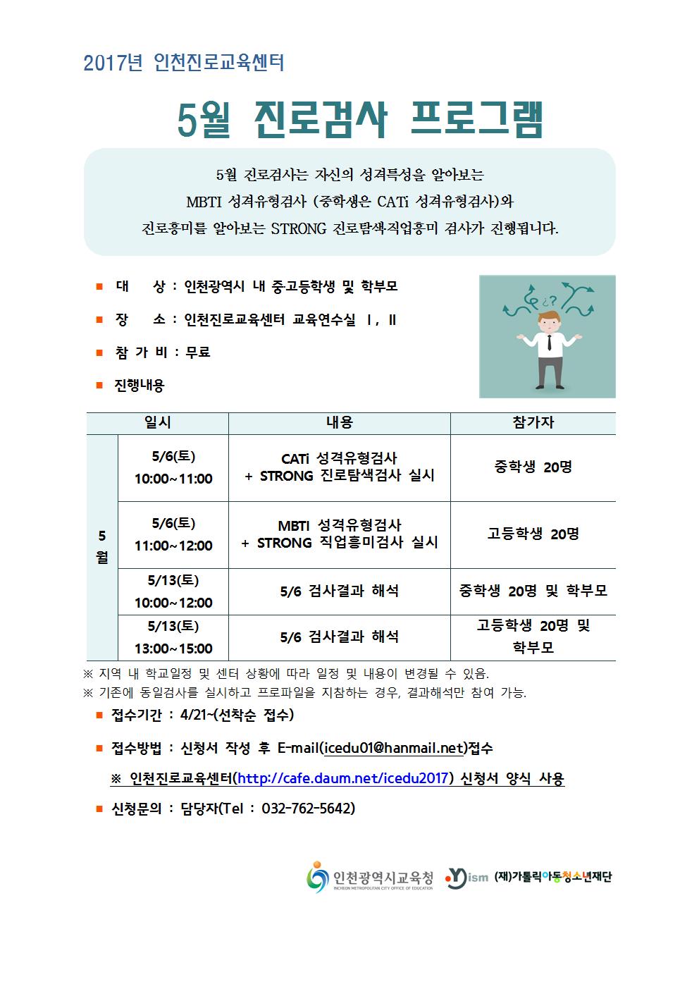 [인천진로교육센터] 5월 진로검사프로그램 안내