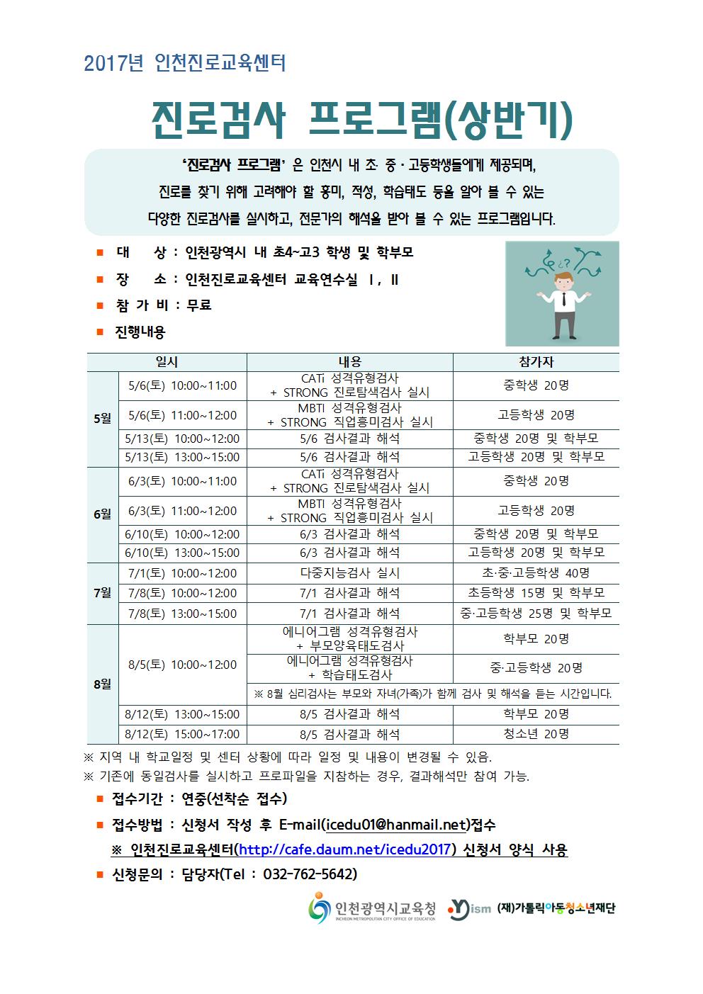 2017년 인천진로교육센터 진로검사 프로그램(상반기)