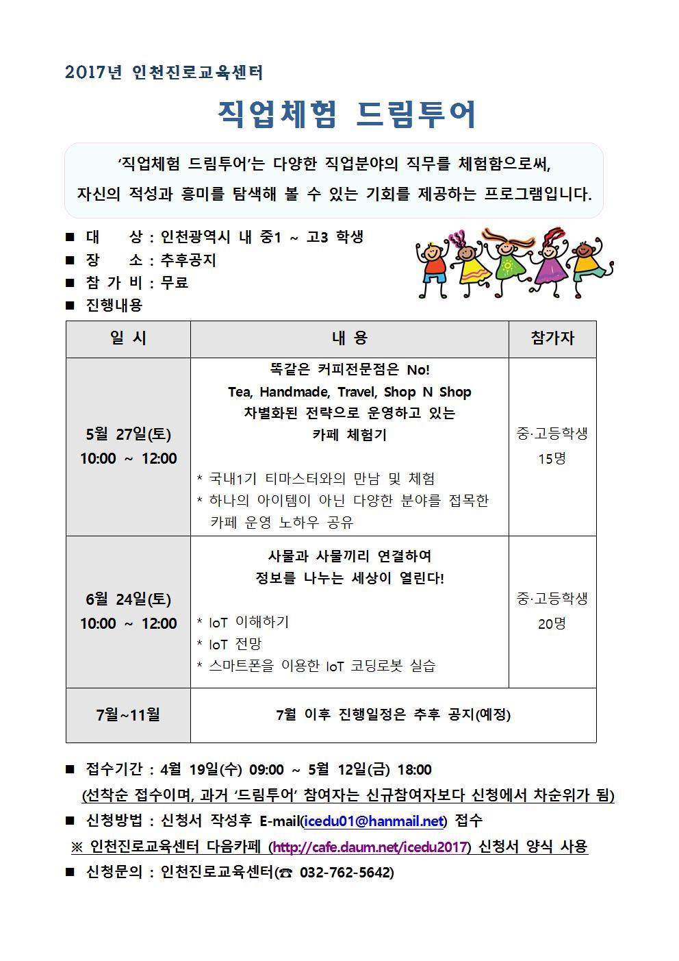 ※ 인천진로교육센터 다음카페 (http://cafe.daum.net/icedu2017) 신청서 양식 사용