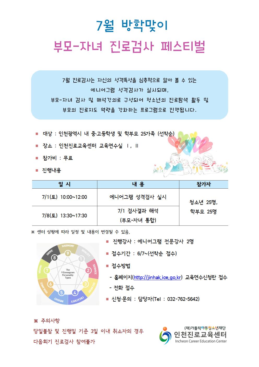 7월 진로검사 프로그램 안내(에니어그램 부모자녀검사)001.jpg 이미지 7월 진로검사 프로그램 안내(에니어그램 부모자녀검사)001.jpg (97KByte) 사진 다운받기
