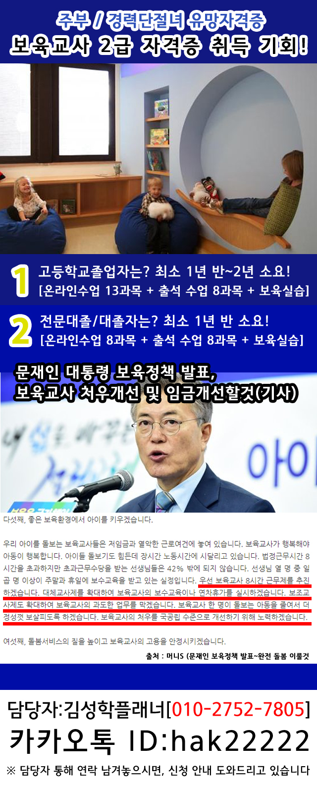 ※보육교사 자격증 ‘지금’ 취득해야 합니다.