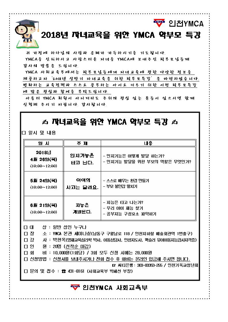 2018년 자녀교육을 위한 YMCA 학부모 특강