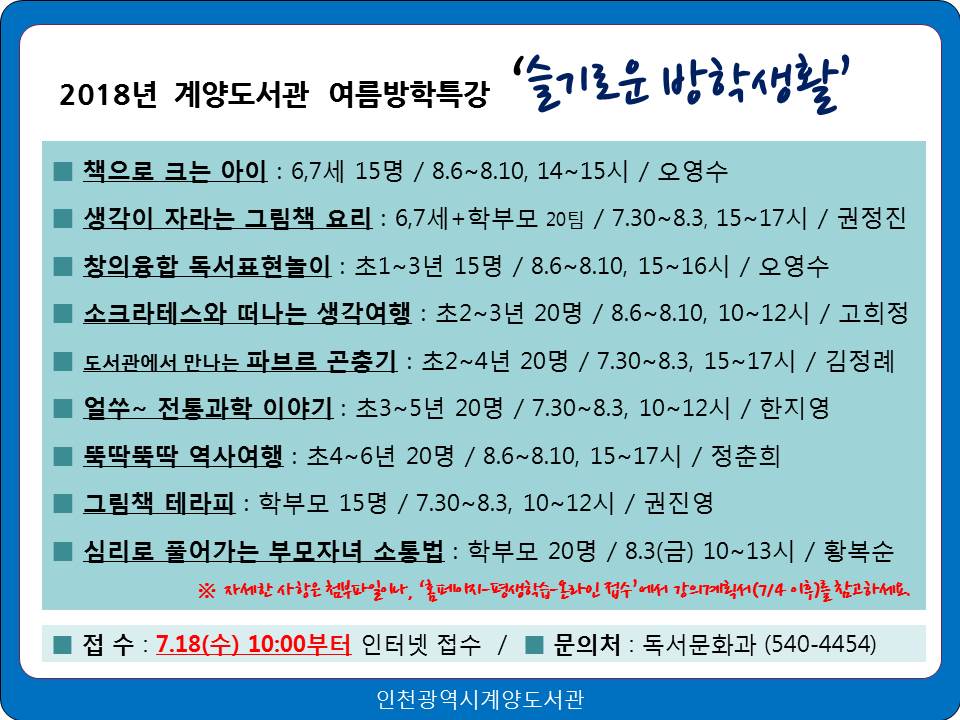 2018 계양도서관 여름방학 특강