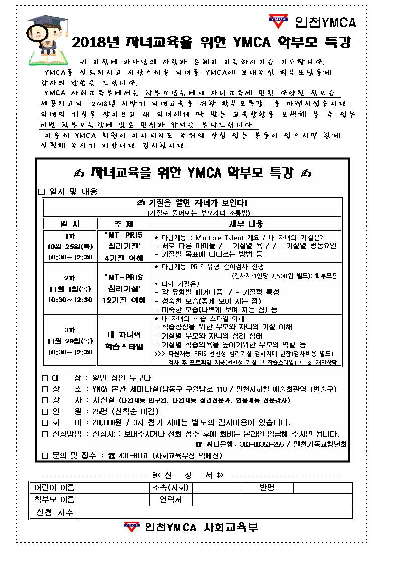 2018년 자녀교육을 위한 인천YMCA 학부모 특강