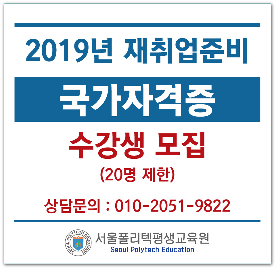 2019년 재취업 대비 국가자격증 수강생을 모집합니다.