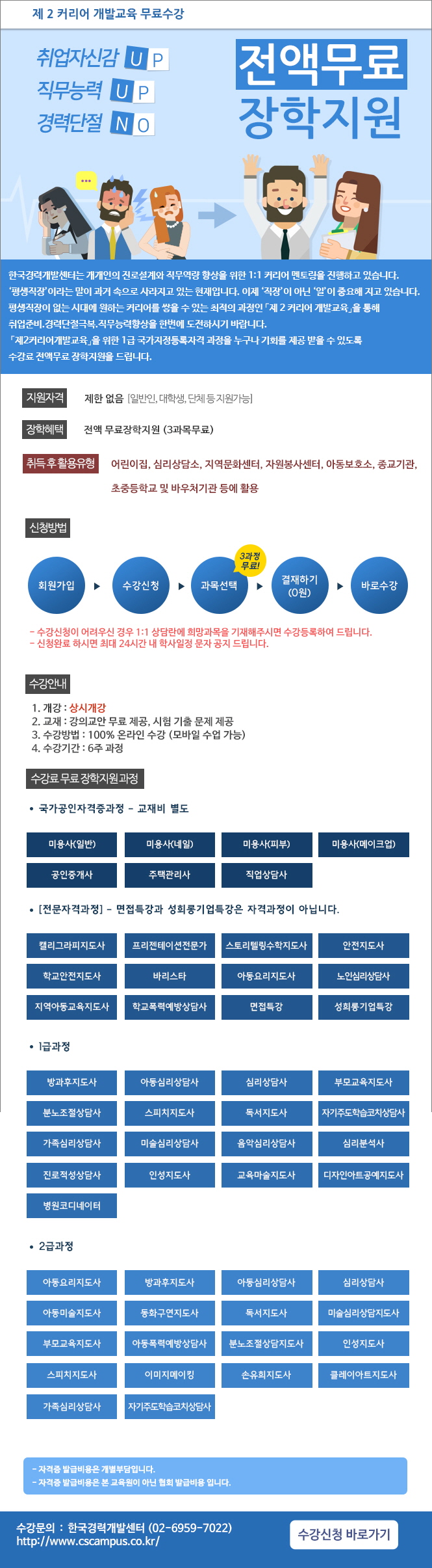 ▶ 장학혜택 : 전액 무료장학지원 (3과목선택)