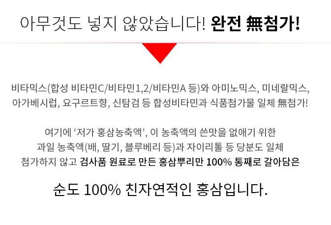 홍삼뿌리만 통째로 갈아 담아 더 진하다! 전체식 홍삼분말액!