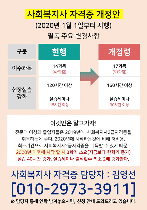 ★국가자격증사회복지사2급자격증 국가고시로 개정 전 마지막으로 쉽게 취득할 수 있는 기회★