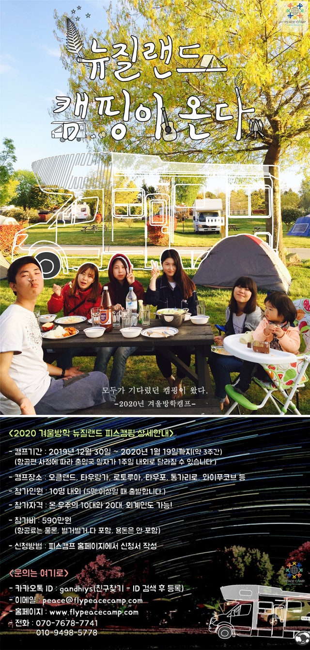 모집중 2020 겨울방학캠프 뉴질랜드 캠핑이 온다!