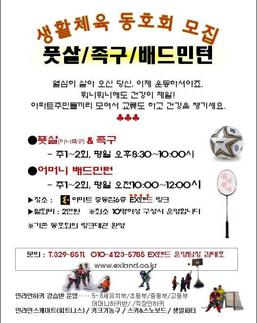 저희는 생활레포츠 전문클럽 EX랜드입니다.