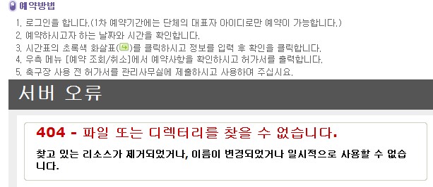 신청하고 나서는 에러 404 메시지가 뜨고