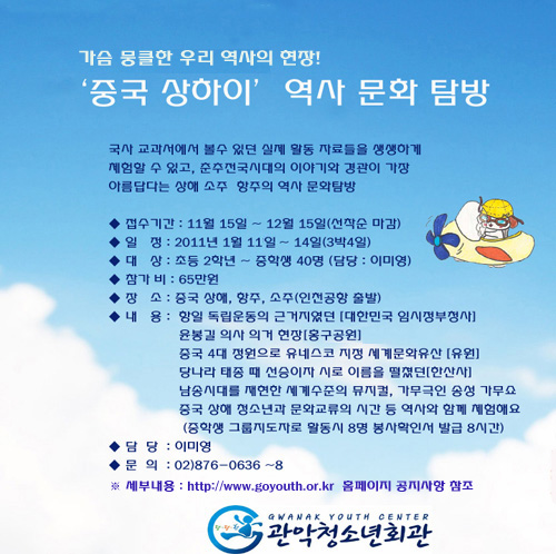관악청소년회관 중국 상하이 역사 문화 탐방