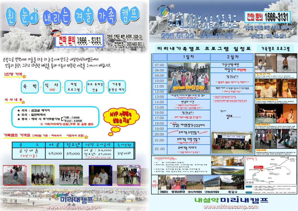 2011년 내설악에서 따뜻한 겨울가족캠프에 초대합니다.