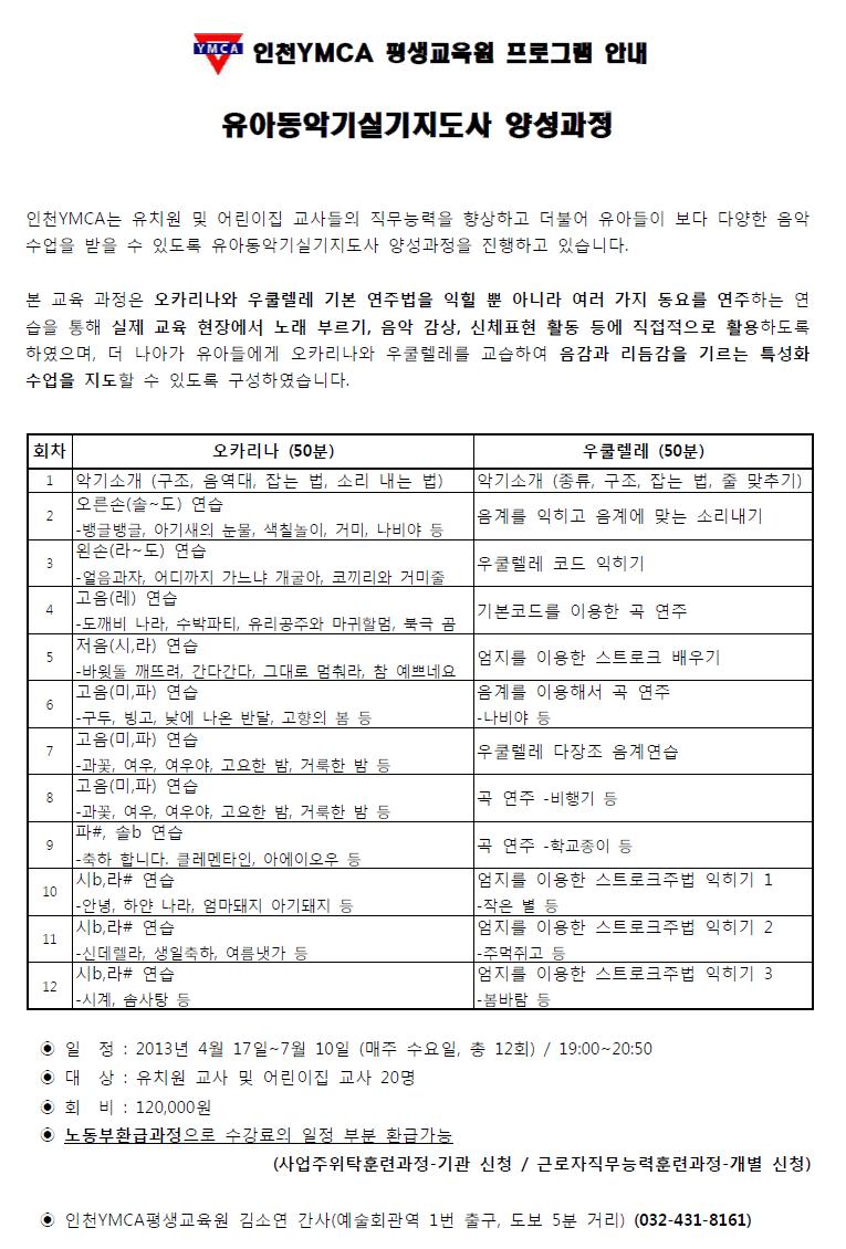 ▶[인천YMCA] 유아동악기실기지도사 양성과정◀