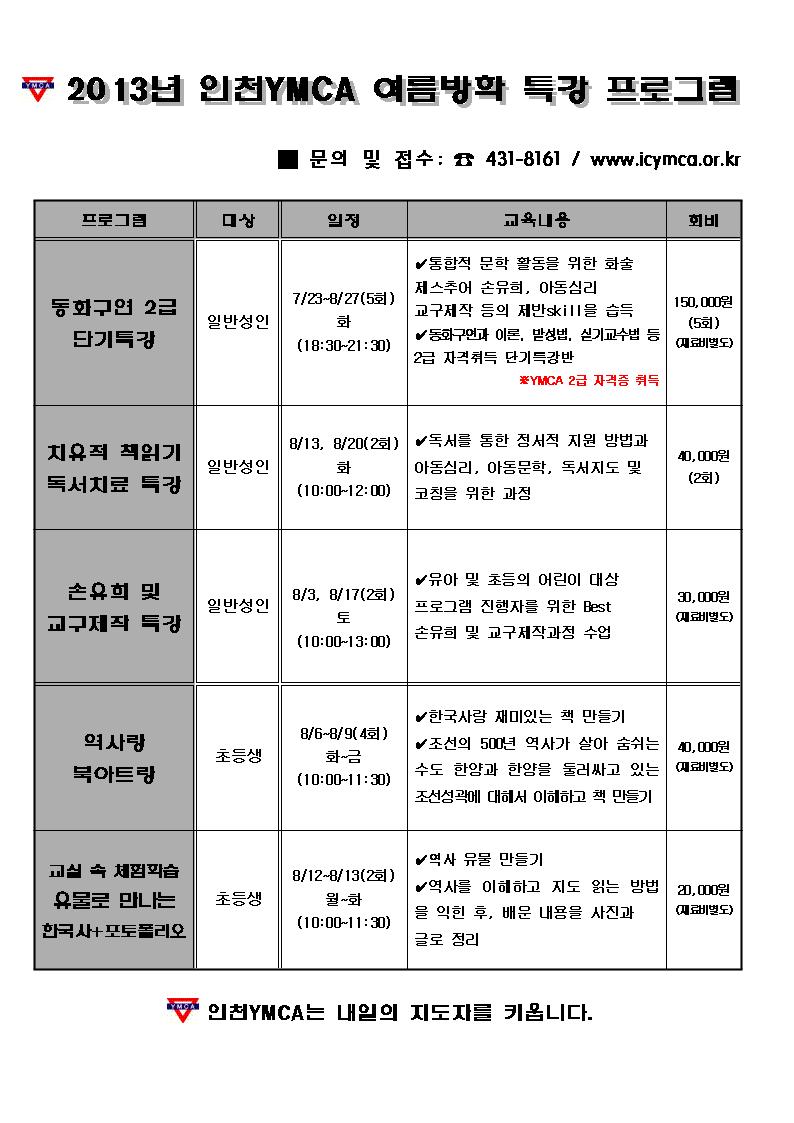 인천 YMCA 여름방학 특강 프로그램.jpg (97KByte) 사진 다운받기