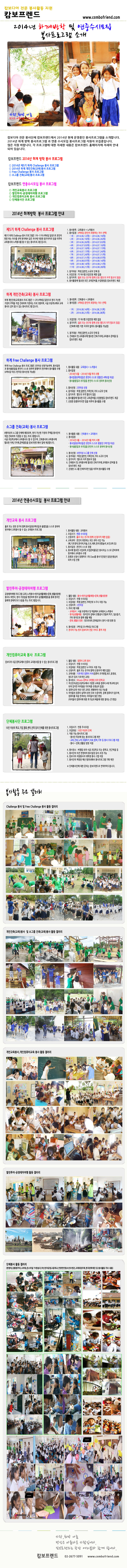 각 봉사 프로그램에 대한 자세한 내용은 캄보프렌드 홈페이지 공지사항에 안내되어 있습니다.