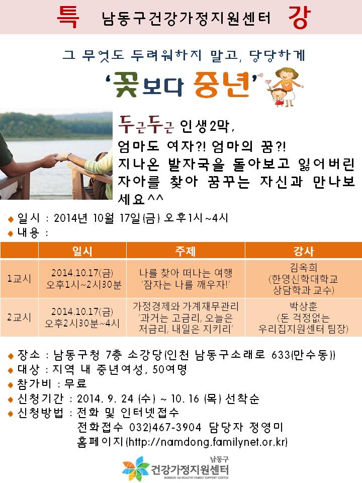 남동구건강가정지원센터 무료특강''꽃보다 중년''