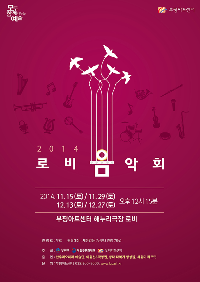 부평아트센터 무료로 즐기는 로비음악회 12시 15분