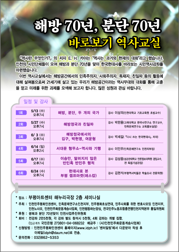 (교육안내) 해방 70년, 분단 70년 바로보기 역사교실