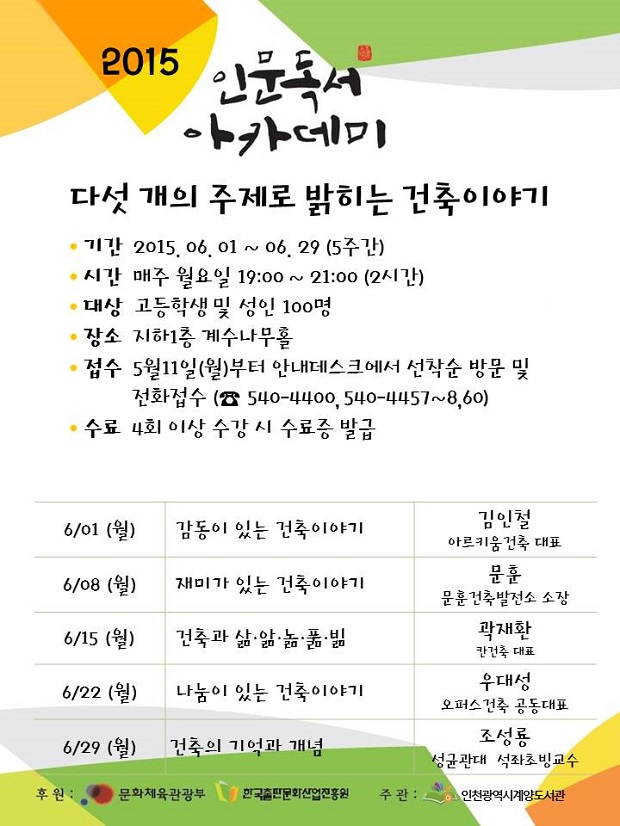 계양도서관 2015 인문독서아카데미 2기 수강생 모집