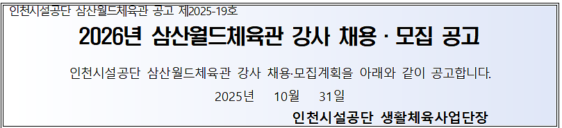 2026년 삼산월드체육관 강사 채용·모집 공고