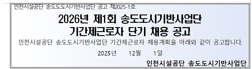 2026년도 제1회 송도도시기반사업단 기간제근로자 채용 공고