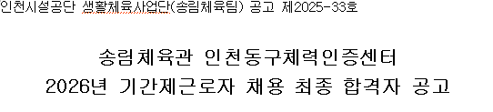 송림체육관 인천동구체력인증센터 기간제근로자 채용 공고