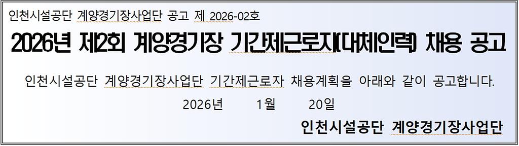 2026년 제2회 계양경기장 기간제근로자(대체인력) 채용 공고
