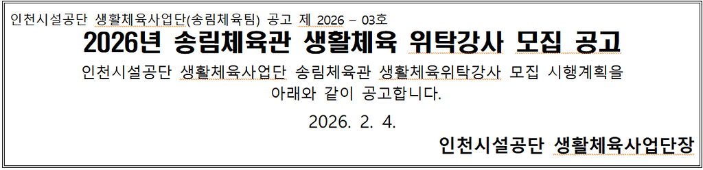 2026년 송림체육관 생활체육위탁강사 모집 공고
