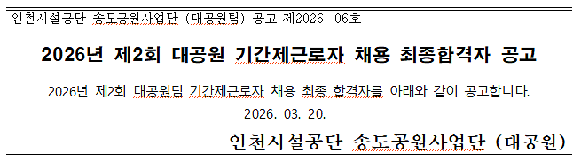 2026년 제2회 대공원 기간제근로자 채용 최종합격자 공고