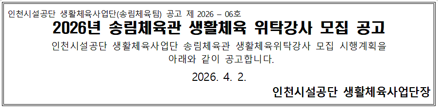 2026년 송림체육관 생활체육위탁강사 모집 공고