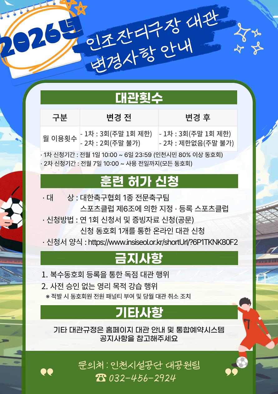 2026년 인조잔디구장 대관 운영사항 변경 안내