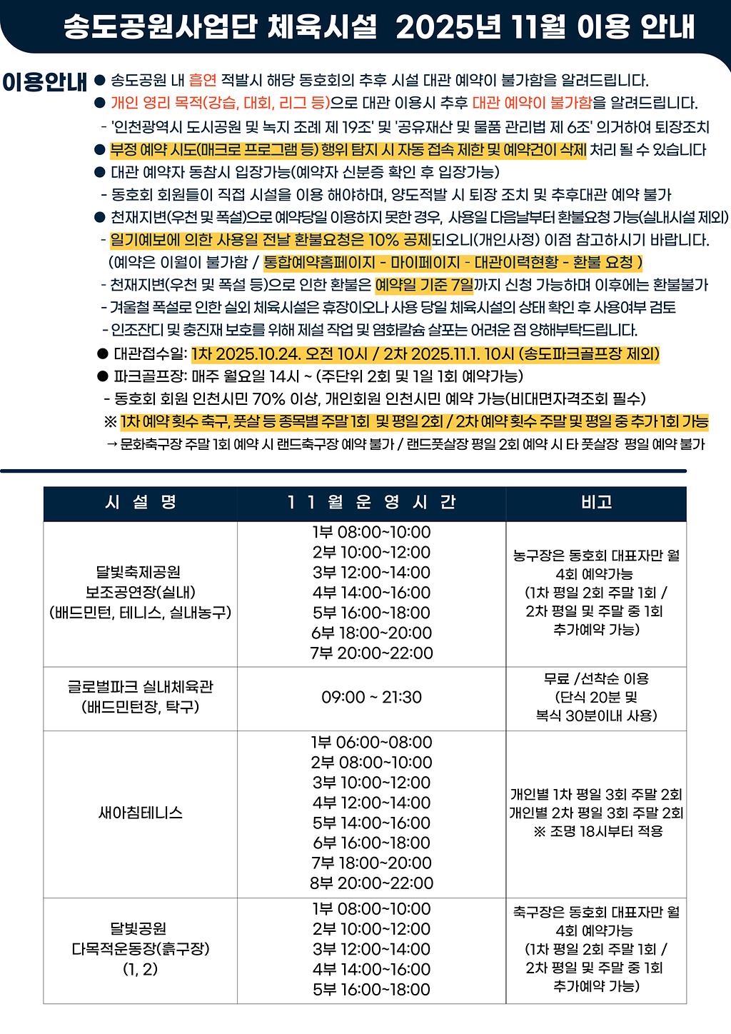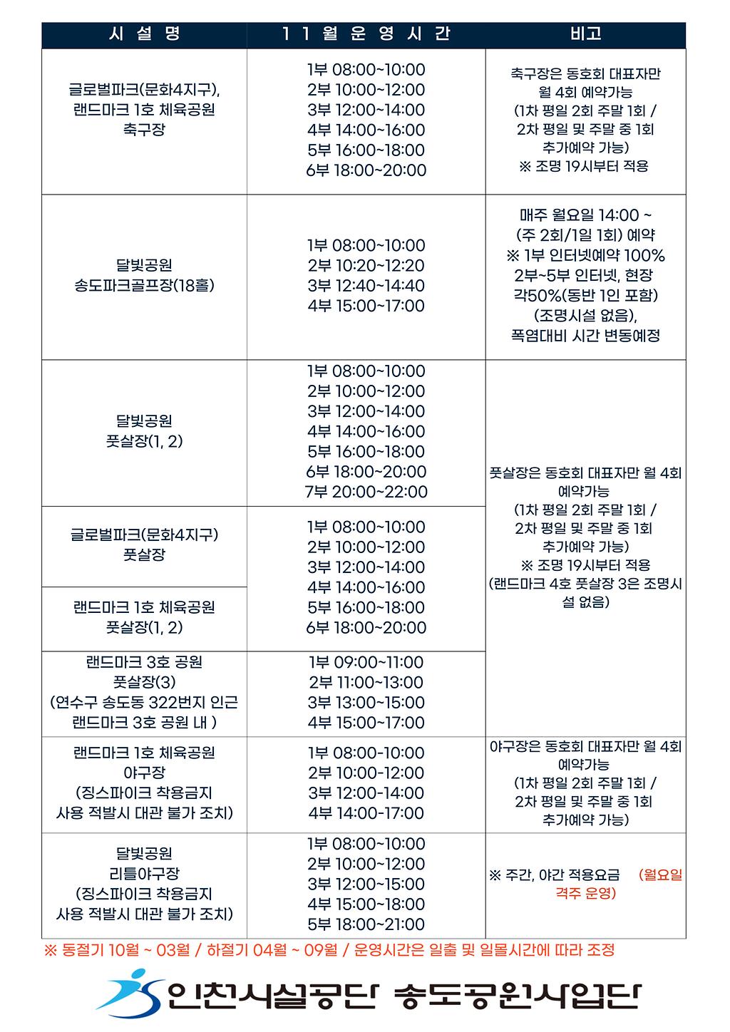 인천시설공단 통합예약 사이트 바로가기 ☞ 인천시설공단 통합예약
