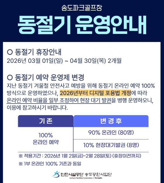 송도파크골프장 동절기 운영 안내