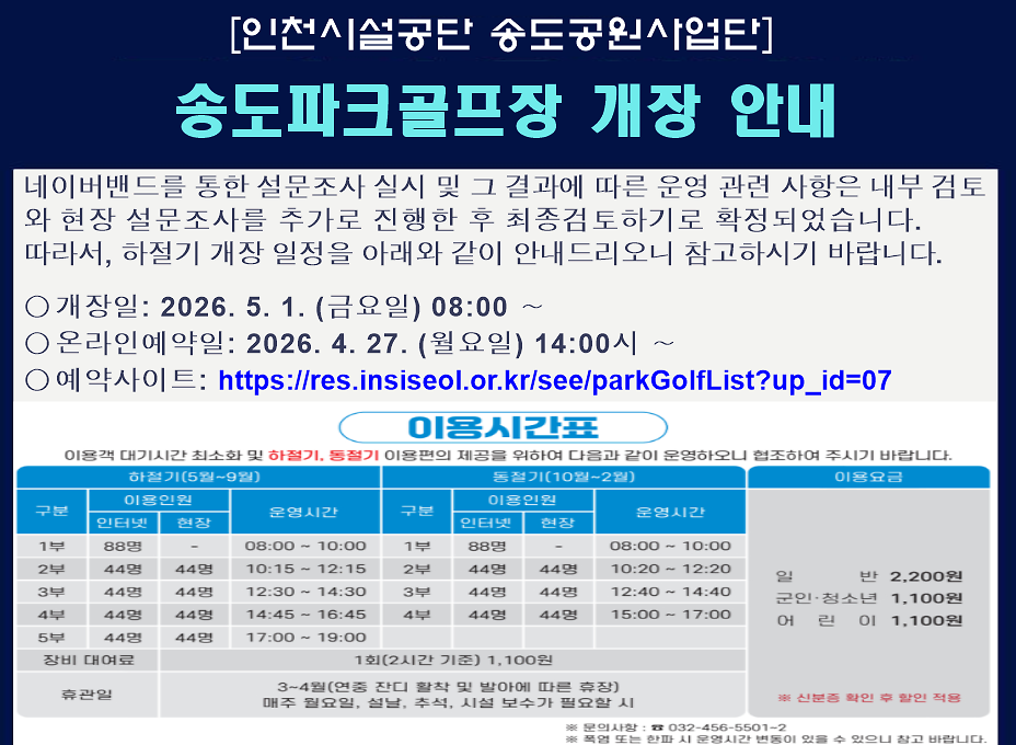 송도파크골프장 개장 안내
