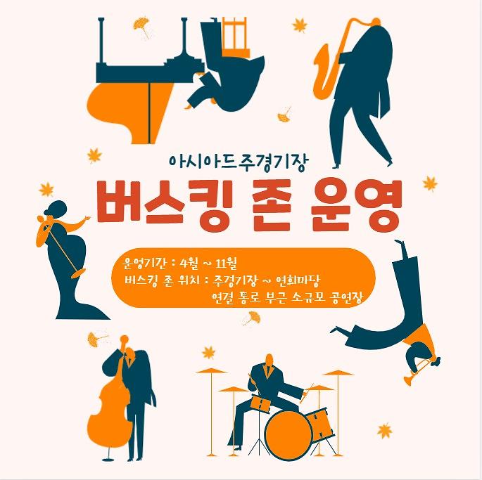 아시아드주경기장에서 **버스킹 존(Busking Zone)**을 운영하고 있습니다.