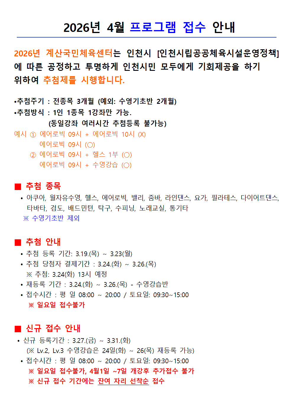 2026년 4월 프로그램 접수 안내